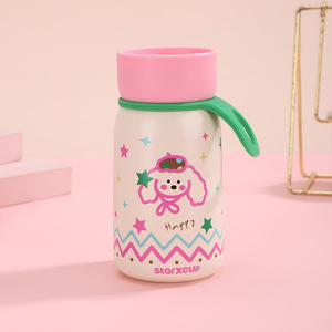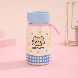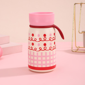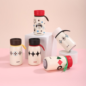 新款户外便携小巧保温杯高颜值迷你女生带提绳水杯双层真空随身杯