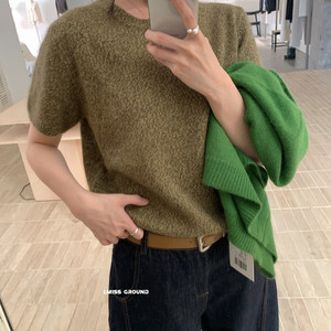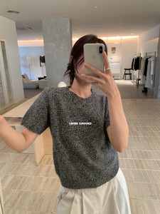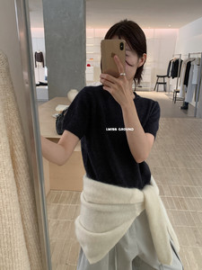 i miss韩标减龄小个子浣熊绒短袖针织衫女2025秋季内搭上衣毛衣