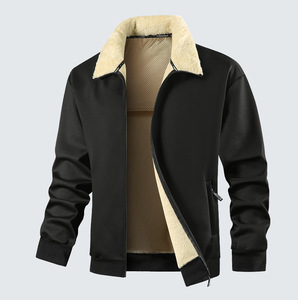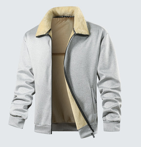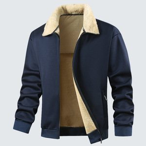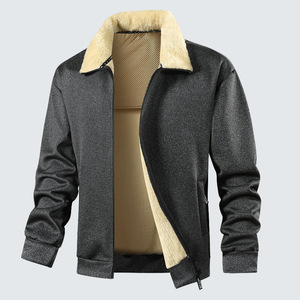 【石墨烯】跨境欧码中青年翻领羊羔绒套装男开衫外套男加绒加厚冬