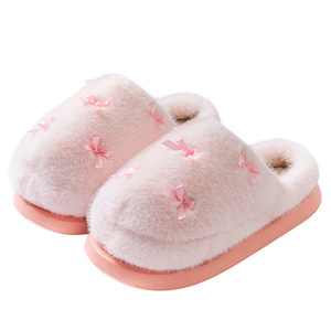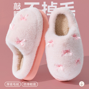 蝴蝶结棉拖鞋女款秋冬外穿2025新款时尚网红超火少女保暖毛绒棉拖