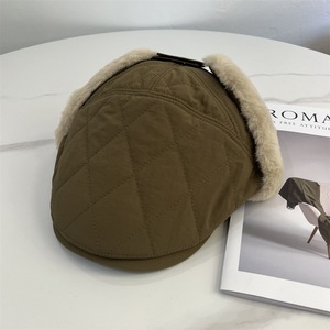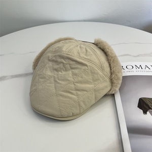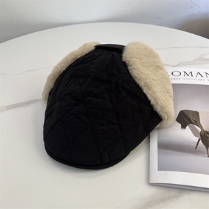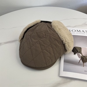 韩国菱格夹棉前进帽秋冬男女新款毛绒护耳鸭舌帽保暖户外飞行帽子