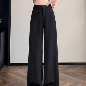 灰色西装裤女春秋季2025新款裤子高腰直筒宽松休闲垂感拖地阔腿裤