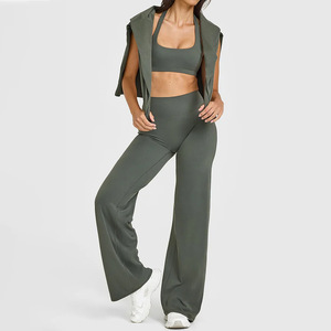 跨境爆款夏薄款高腰直筒裤宽松显瘦瑜伽服运动户外健身长裤女