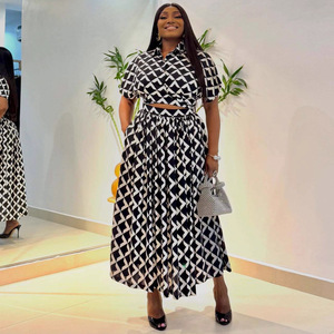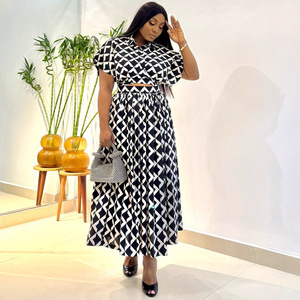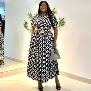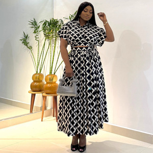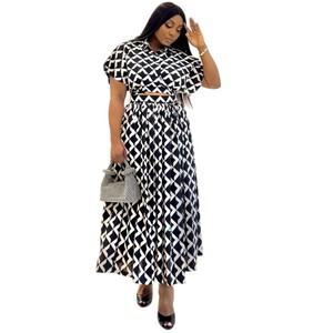 欧美新款印花大码短袖T恤衫高阔半身裙非洲跨境女装宽松休闲套装