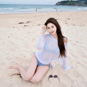 海边度假防晒衣女夏季新款微透小心机白色罩衫女装泳装宽松长袖T