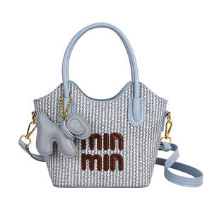 2025新款草编单肩包女今年流行手提包包女潮流水桶斜挎包小众设计