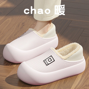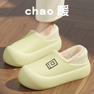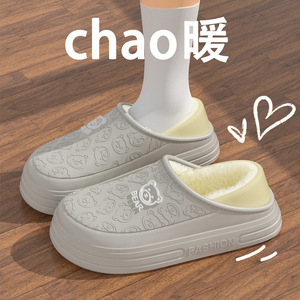 新款eva卡通防水棉拖鞋女秋冬包跟防滑室内家用外穿保暖毛毛拖鞋