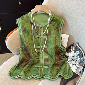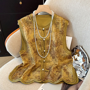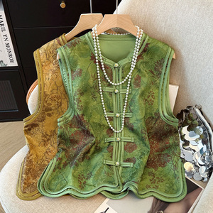 新款新时尚新中式提花马甲国风圆领气质外穿马夹唐装上衣外套