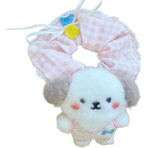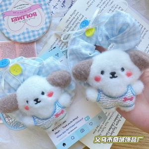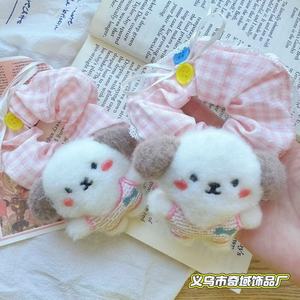 可爱毛绒小狗玩偶格纹大肠发圈甜美少女扎马尾头绳学院风卡通发绳