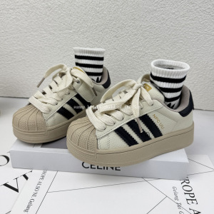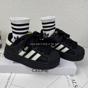 时尚版儿童贝壳头板鞋春秋新款女童运动鞋轻便防滑黑色男童休闲鞋