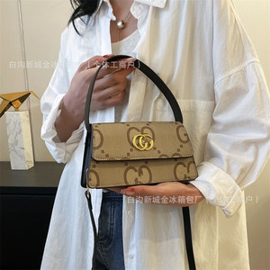 2025新款经典老花邮差包双G Jumbo 单肩驼色斜跨式女包实物带logo