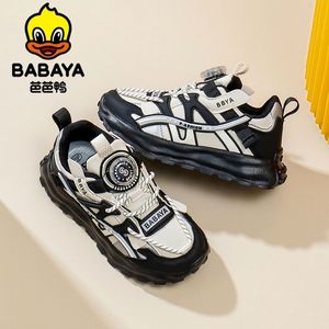 芭芭鸭童鞋女童运动鞋旋转纽扣女孩鞋子中大童男童跑步鞋2025秋季