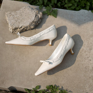 头层牛皮蝴蝶结浅口单鞋女猫跟鞋细跟鞋法式新品方头中跟浅口单鞋