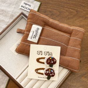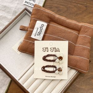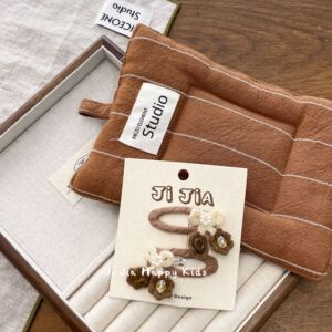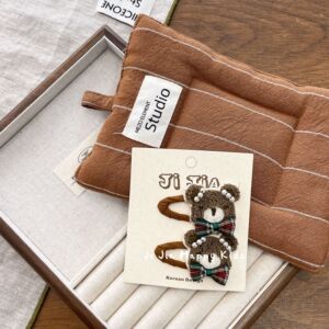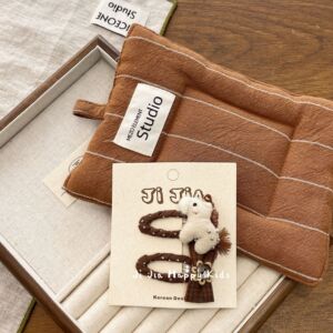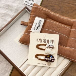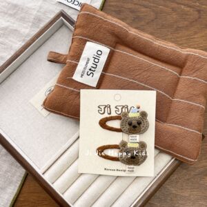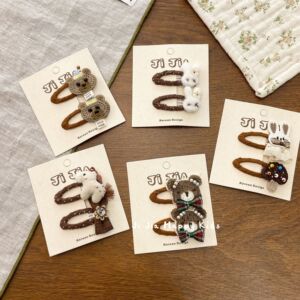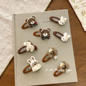 新款咖色系毛线卡通兔子发夹甜美刺绣可爱小熊BB夹儿童侧边边夹