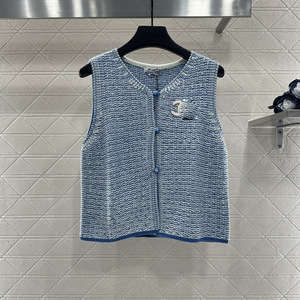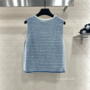 盘扣针织圆领短款马甲女 复古小香风时尚百搭无袖开衫秋 CW81859