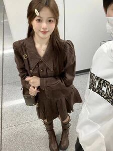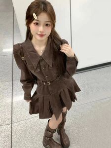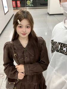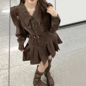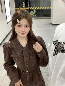 辣妹美拉德穿搭复古长袖牛仔连衣裙女秋季收腰显瘦百褶裙字短裙