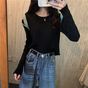 2025年秋冬款针织衫网红打底毛衣设计感小众心机露肩针织上衣女装