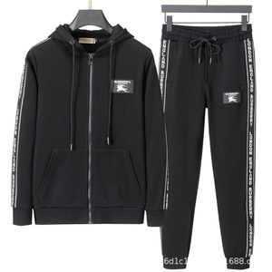 跨境外贸高品质经典款满印字母logo运动时尚套装休闲拉链带帽卫衣