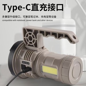 新款强光手电筒USB充电远射cob多功能户外照明应急巡逻手提探照灯