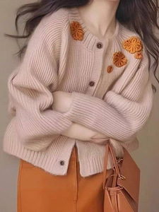 花朵刺绣减龄毛衣外套设计感单排扣针织开衫洋气长袖上衣