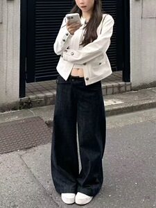 中古香香 白色明线撞色小香牛仔短外套女秋夹克