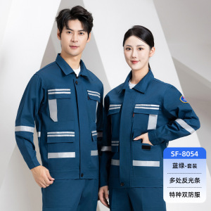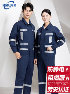 春秋阻燃防静电工作服男耐磨工厂车间印字双防机修工人劳保服定制