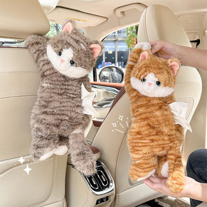 可爱猫咪车载纸巾盒毛绒玩偶公仔车用挂式纸巾袋网红汽车装饰用品