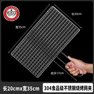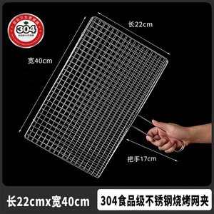不锈钢烧烤网烤鱼夹夹板加密夹子加粗网面拍子烧烤配件食品级家用