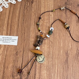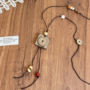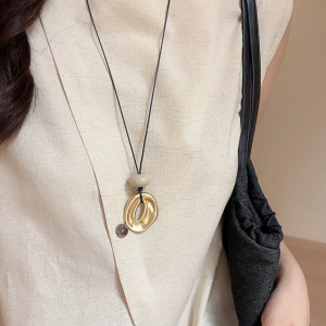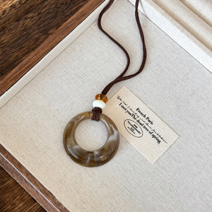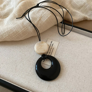 24#项链-黑色-奶茶色-皮绳-扁圆