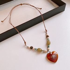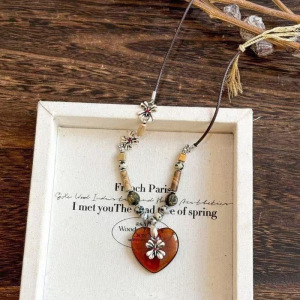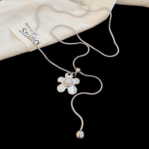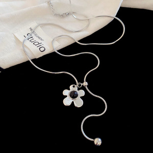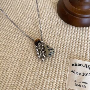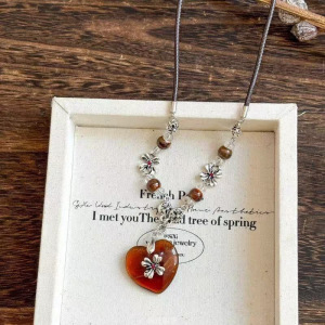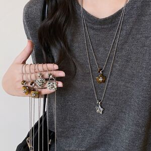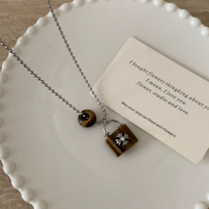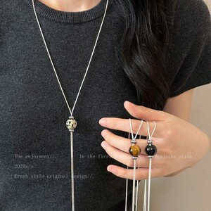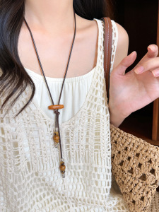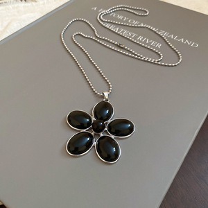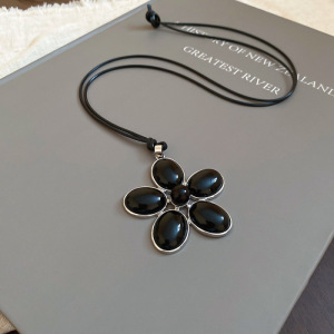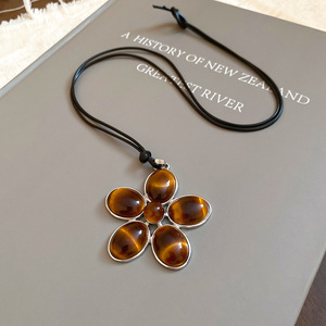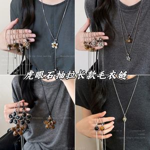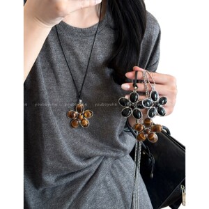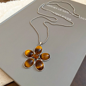 复古美拉德风虎眼石花朵吊坠项链时尚百搭毛衣链气质高级感项饰女