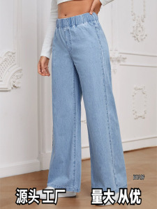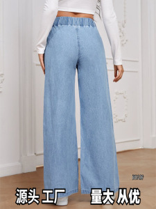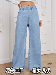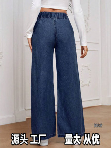 亚马逊热卖跨境欧美纯色牛仔裤女2025夏季新款时尚宽松潮流长裤子