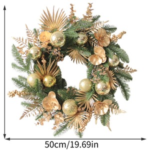 圣诞节装饰花环绢花人造花环壁挂花圈金色圣诞藤条场景布置挂饰