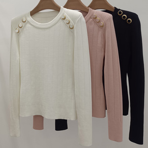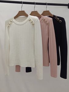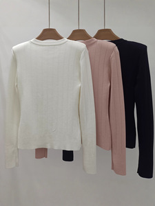 南油小香风圆领长袖针织衫2025秋装新款简约修身打底套头毛衣