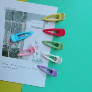 可爱奶油色系多巴胺金属水滴形发夹甜美少女侧边刘海夹鸭嘴夹发饰