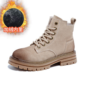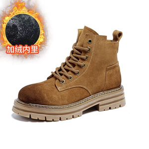 厚底马丁靴女2025秋冬新款内增高复古机车大黄靴户外西部牛仔靴子