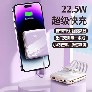 新款超薄PD22.5W双向快充自带线20000毫安大容量便携移动电源礼品