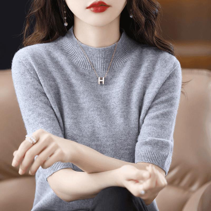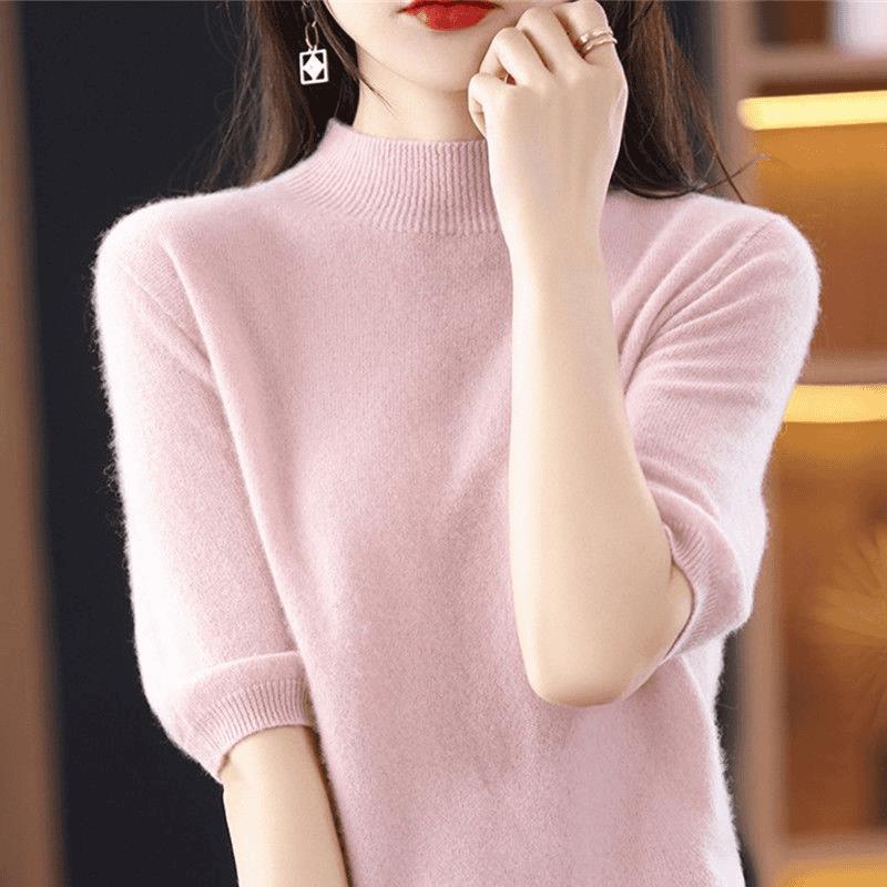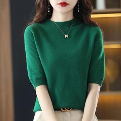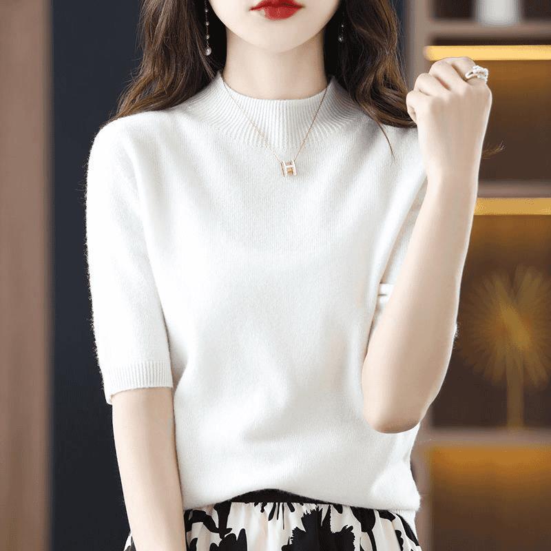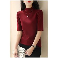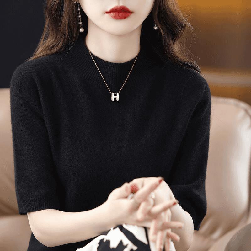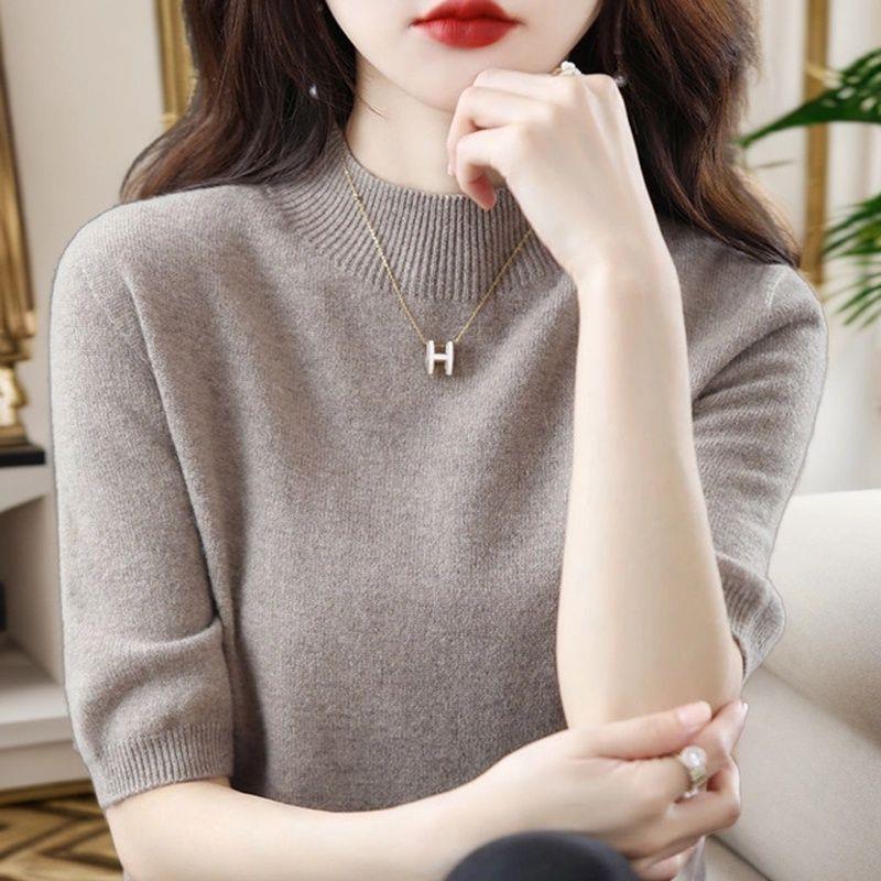 洋气半高领休闲针织衫女2025年秋季新款色内搭半袖打底毛衣T恤
