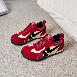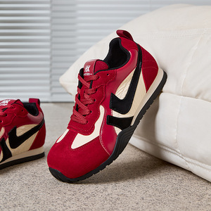 酒红拼色阿甘鞋女 2025秋冬新款韩版潮流运动休闲鞋网红ins风女鞋