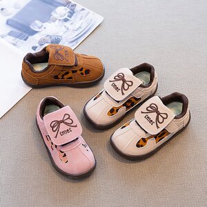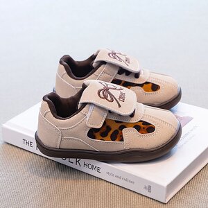 女童德训鞋豹纹儿童运动鞋2025新款秋冬款小学生加绒鞋子女宝板鞋