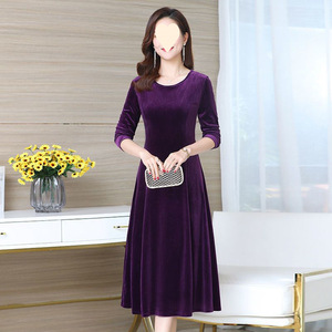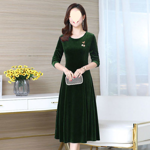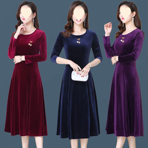 连衣裙女秋冬新款金丝绒连衣裙女中长款修身大码妈妈裙女装