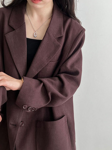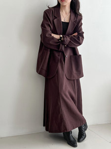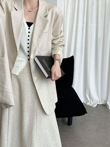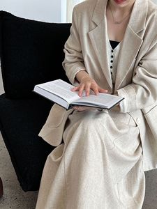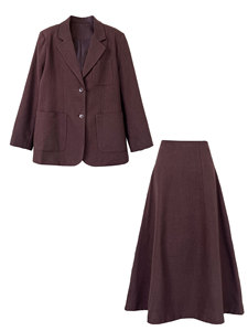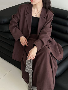 鹿西 韩系基础休闲麻料西装+半裙女秋季新款通勤气质廓形套装3707