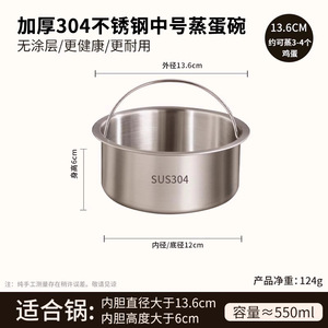 304不锈钢带提手蒸蛋碗食品级辅食碗 宝宝炖盅蒸格带脚专用小蒸碗