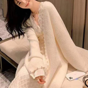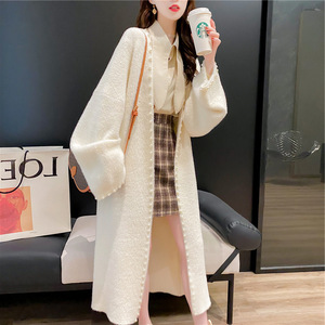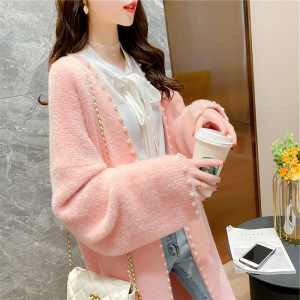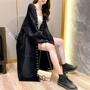 秋冬超仙纯欲风开衫仿貂绒风衣中长款宽松慵懒风外套钉珠针织衫女