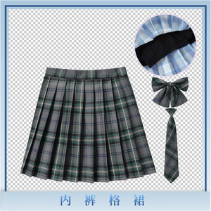 【48CM安全裤】墨绿格(裙)+领结+领带