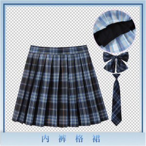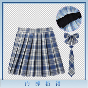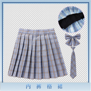 【48CM安全裤】蓝白格(裙)+领结+领带