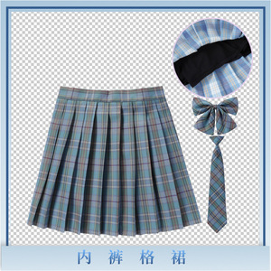 【48CM安全裤】蓝小格(裙)+领结+领带
