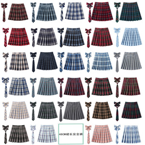 (安全裤48CM裙+领结+领带)防走光jk制服格子学生百褶半身高腰女裙