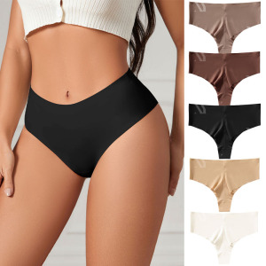 跨境新款中腰冰丝无痕内裤女舒适透气纯棉裆一片式大码纯色三角裤