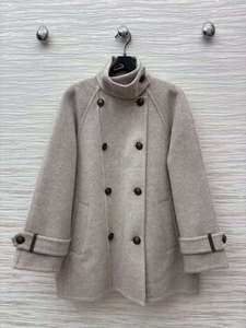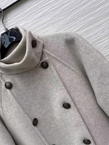 2025早秋新款双排扣立领宽松中长款毛呢风衣外套女气质优雅百搭