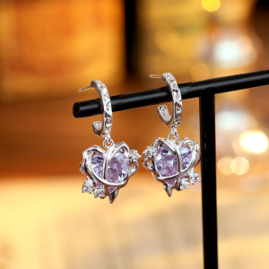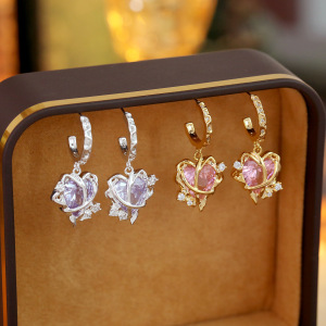 液态熔岩感粉色锆石爱心耳扣简约气质高级感银针耳环韩国设计款